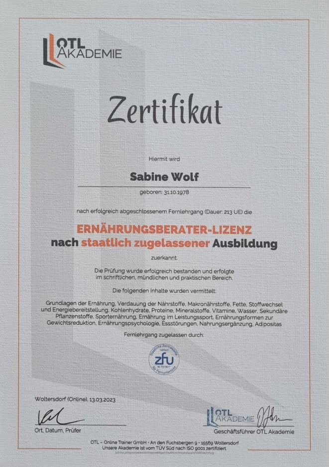 OTL Prüfdozentin für Ernährungsberater / Ernährungsberater Sport