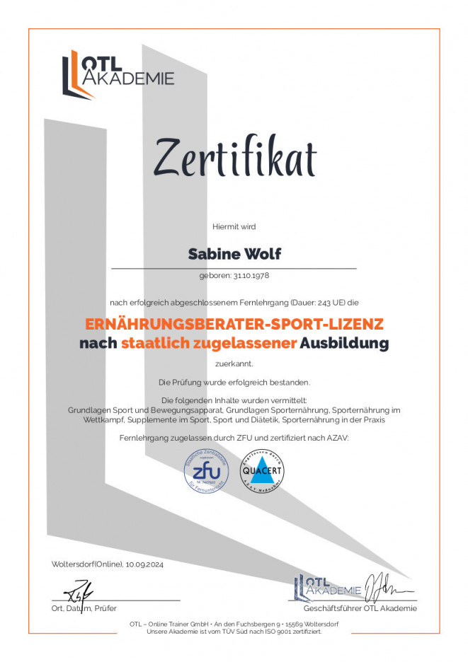 OTL Prüfdozentin für Ernährungsberater / Ernährungsberater Sport